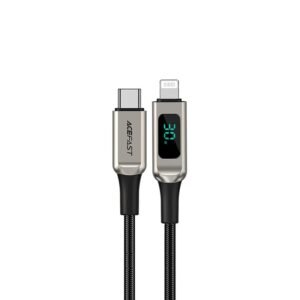 C6-01 USB-C to Lightning zinc alloy digital display braided charging data cable, black