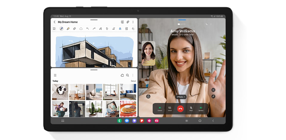 Conquer several chores at once. With the Galaxy Tab A9+, you may draw architectural designs, select stunning images, and video chat up to three apps on one screen without ever quitting a window.